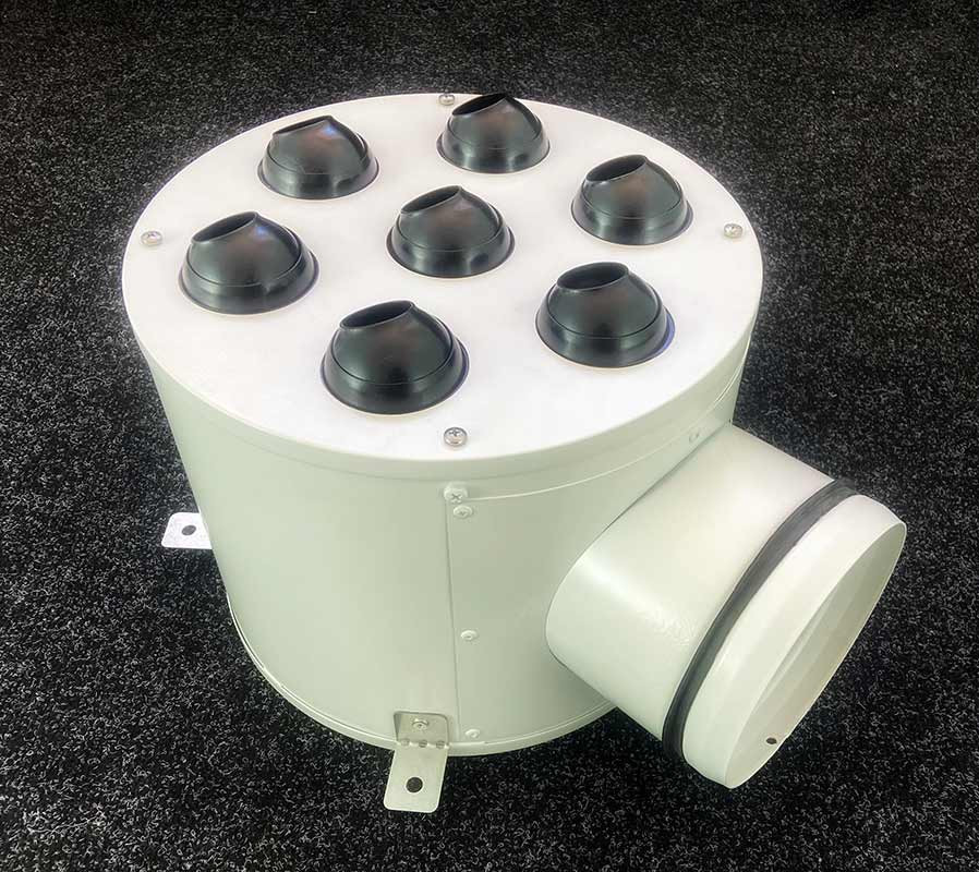Камера статического давления действует как простейший камерный глушитель, снижая шум, распространяющийся по вентиляционной сети на 4–6 дБ.