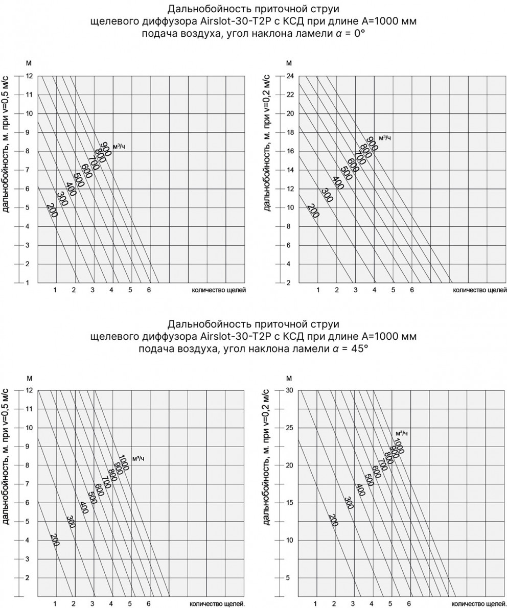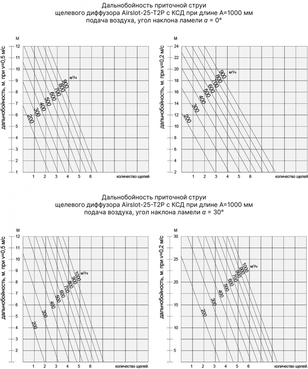 Диффузоры данной серии могут изменять расход до 60% при сохранении устойчивости потока. Их можно использовать на высоте от 2,6 до 4-х метров, при перепаде температур до 12°C.